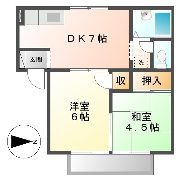 和室 4.5帖 1室/和室 6.0帖 1室/DK 7.0帖 1室 - 向き