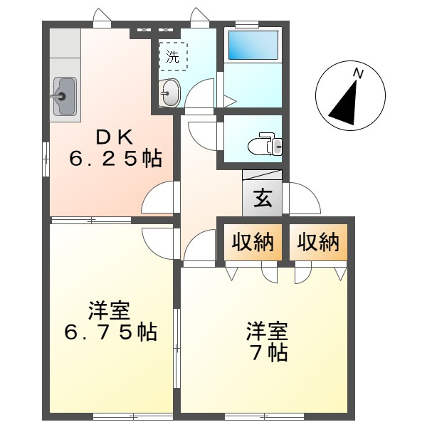 DK 6.2帖 1室/洋室 6.7帖 1室/洋室 7.0帖 1室 - 向き